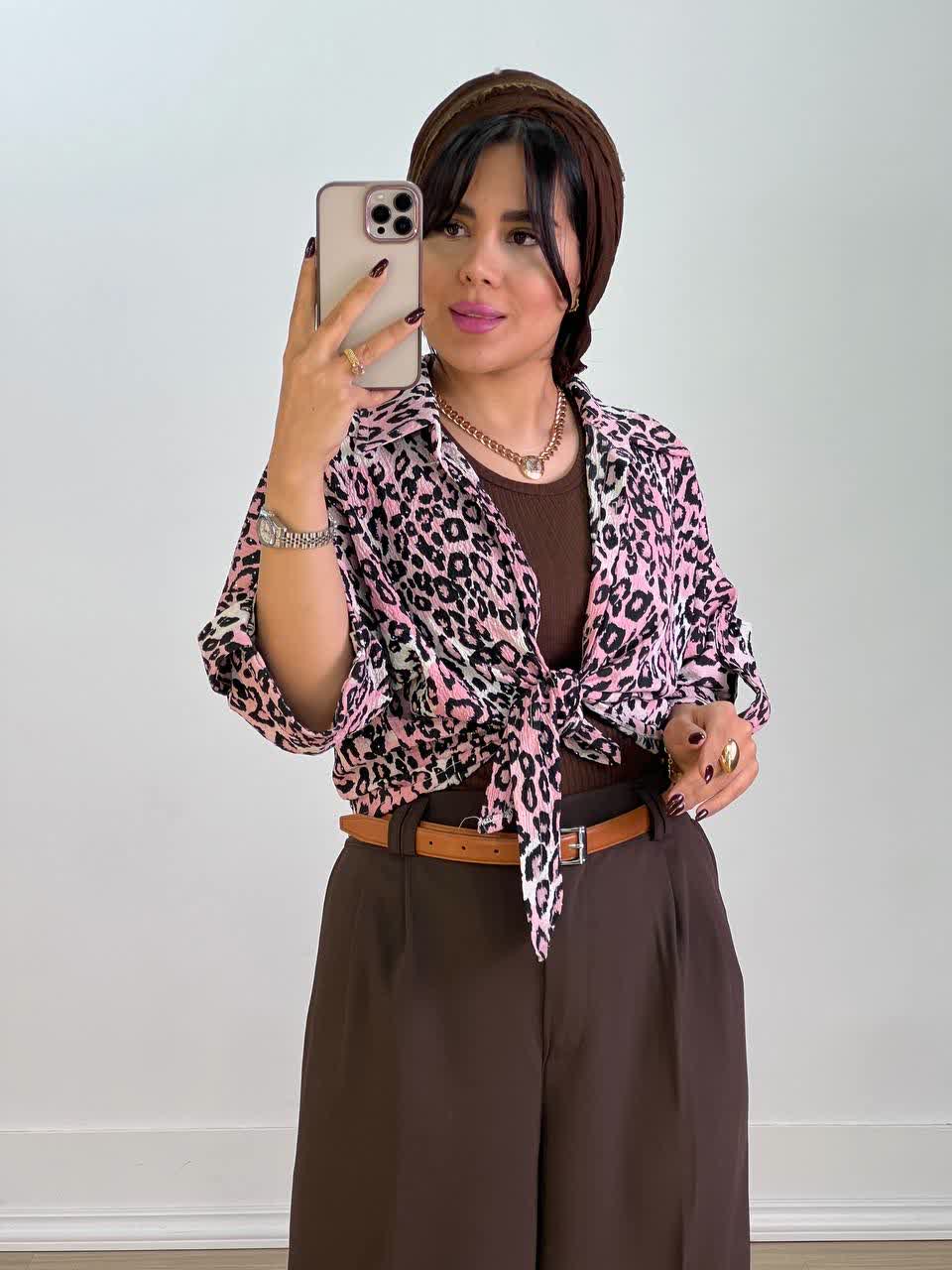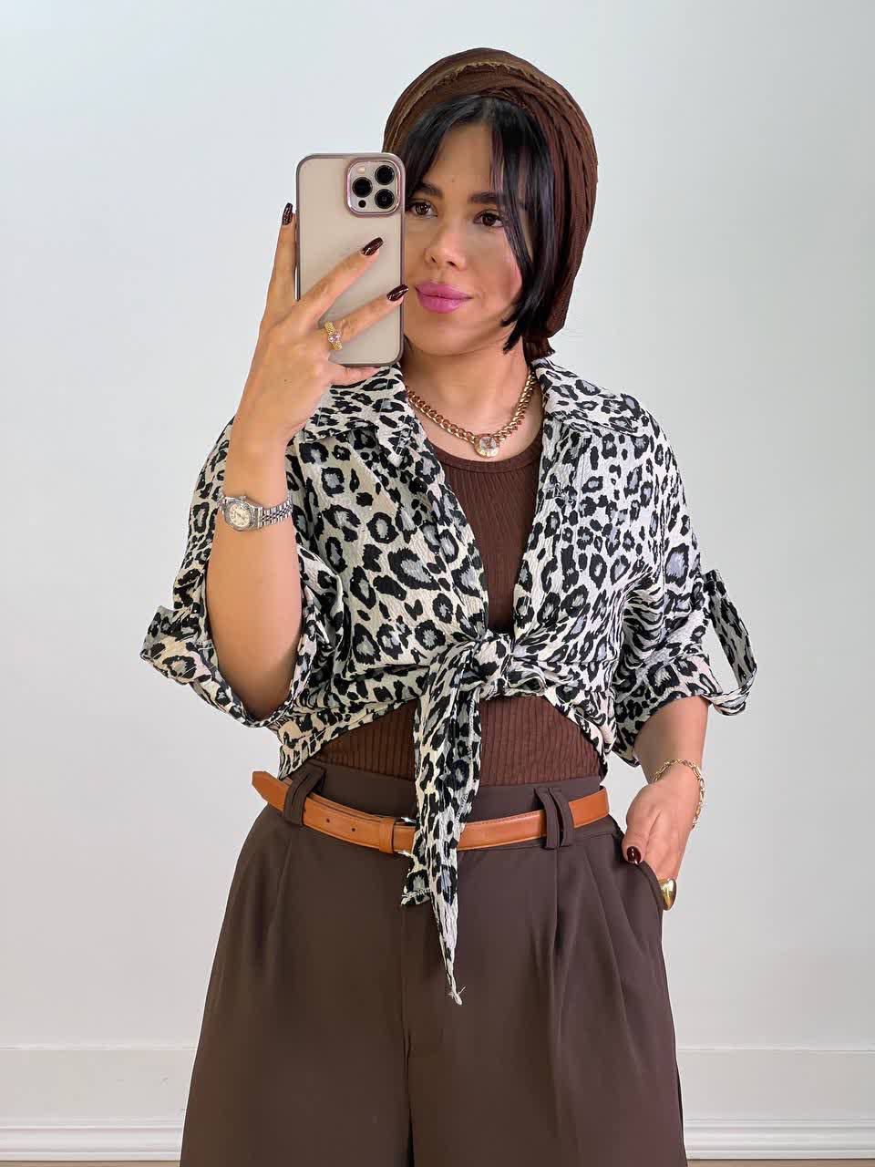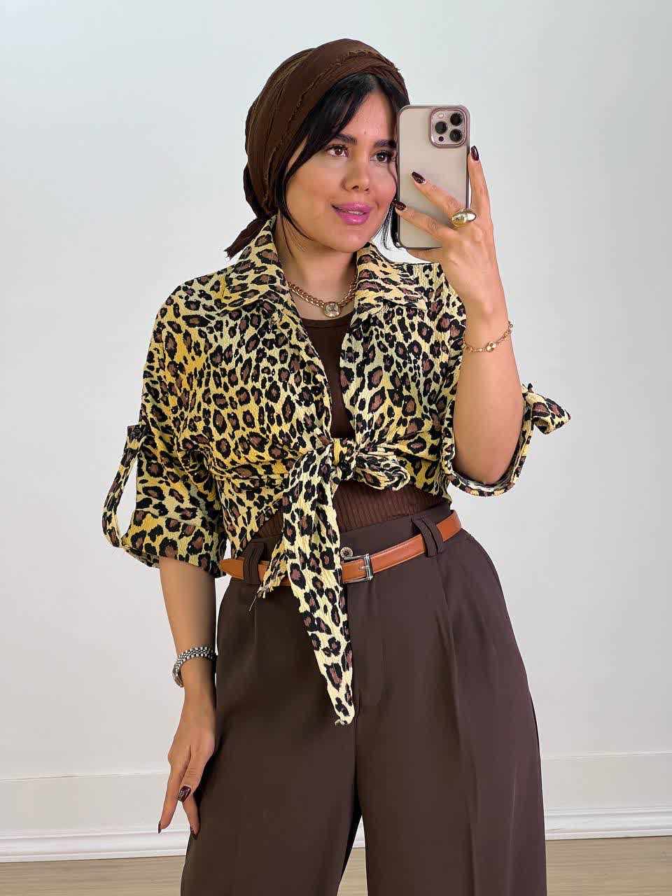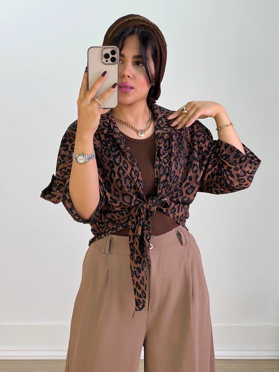 شومیز پلنگی گره ای مدل 5556