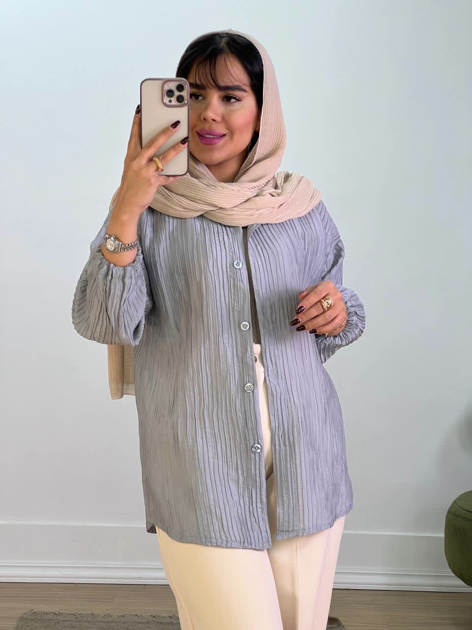 شومیز جنس: قد:70 دورسینه :120 دور باسن :118 دوربازو :46 قدآستین ازکنار یقه :60 اندازه ها کمی حدودی میباشد ____________________________________ فیلتر شکنتونو خاموش کنید و از گوگل سرچ کنید سانلی و کد جستجوی محصول رو قسمت سرچ بزنید ‼️خرید ازسایت میباشد.موجودی سایت و فروشگاه لحظه ای میباشدpooshakesanli.com ✅✅✅لطفاًدر خریدتون دقت کنید چون تعویض و مرجوع نداریم ‼️‼️کد مرسوله ها ۷۲ساعت بعد بجز تعطیلات داخل سایت وارد میشه (وارد سایت بشیدو قسمت پیگیری سفارشات کد سفارشتونوبزنید)و کد مرسوله رو تحویل بگیرید.در صورتیکه کد مرسوله نداشتین با پشتیبانی در تایم کاری ذکر شده تماس بگیرید ‼️برای هرگونه سوال ومشکلات با شماره پشتیبانی ۰۹۳۰۰۸۵۰۰۳۷ در ساعات کاریِ ۱۰صبح الی 14 و 14:30 الی 18 عصر بجز تعطیلات رسمی پاسخگوی شماعزیزان هستیم ‼️موجودیه اجناس سایت و حضوری کاملاً لحظه ای میباشد ‼️ادرس:کرج میدان طالقانی مرکز خرید پارسیان بلوک بی واحد۲۰ ساعت کاریه فروشگاه ۱۰صبح الی۱۴ و ۱۶الی۲۱:۳۰ همه روزه